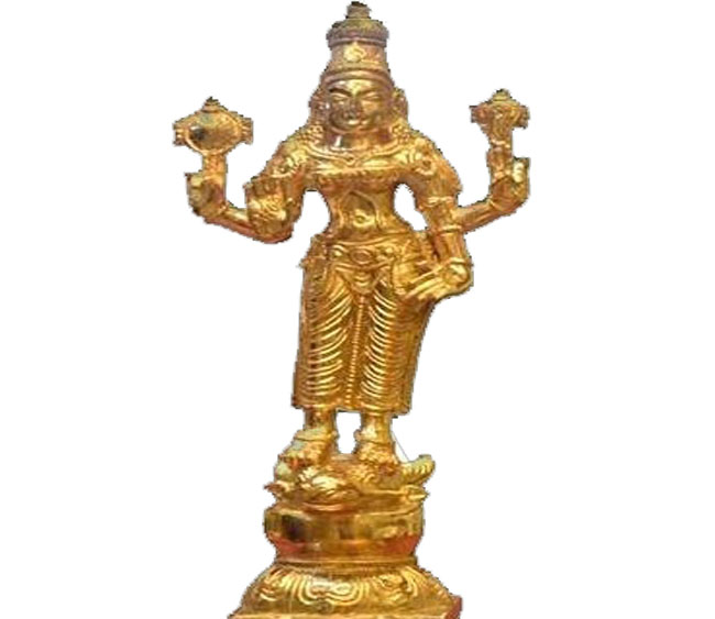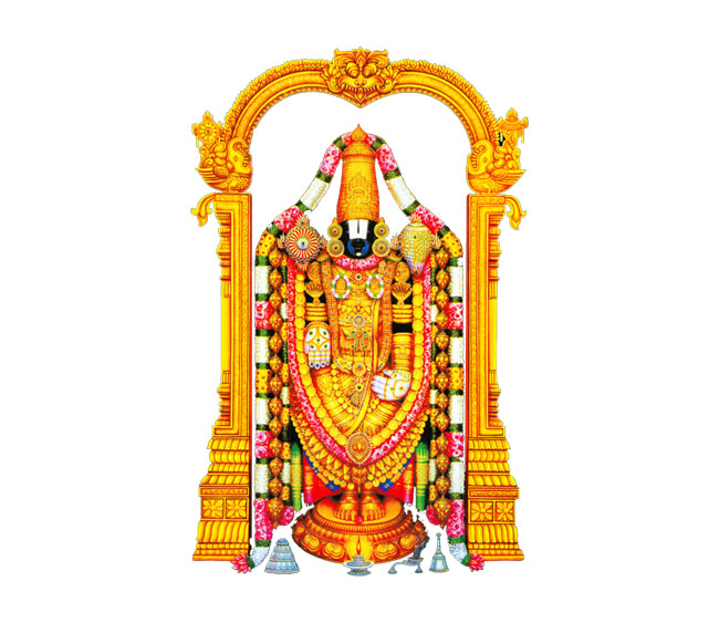 Sri Srinivasa perumal is in standing posture (Nindra thirukkolam) on the petals of the Lotus. One can see and admire the beauty the Diamond Crown known as Kreetam on the head of the Lord Sri Srinivasa perumal. Thirumanjanam or sacred bath is performed for the main deity of our temple. Each and every material used in the bath is full of special qualities. Towards the end, the deity is bathed in milk, yoghurt, young coconut water, turmeric powder, mixed powder, panchamirtham (Nectar made of five fruits), honey and sandalwood paste before being rinsed with water from the sacred pot. This has a cooling effect on the deity and therefore, this form of prayer is ideal for Kaliyuga. Garuda is usually referred to as Periya Thiruvadi is installed serving the Perumal in all of his avatarams